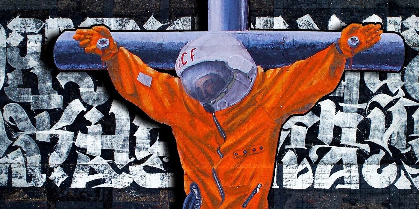 está royendo el pie de la cruz.