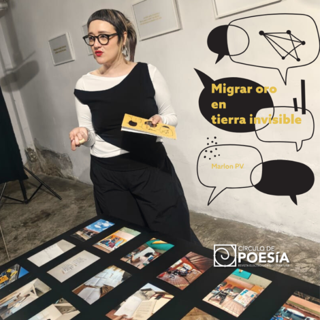 Presentamos un texto de Jonathan Pérez Juárez sobre “Migrar oro en tierra invisible” de la poeta y artista multidisciplinaria Marlon PV, propuesta que articula poesía documental, archivo y práctica artística para abordar la migración fronteriza.