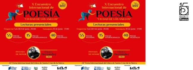 SE REUNIRÁN 15 AUTORES INTERNACIONALES Y 40 NACIONALES Encuentro Internacional de Poesía “Ciudad de los Anillos” celebra sus 10 años con poetas de 16 países Se realizará del lunes 5 al sábado 10 de junio, a las 20:00, en el marco de la 24 Feria Internacional del Libro de Santa Cruz de la…